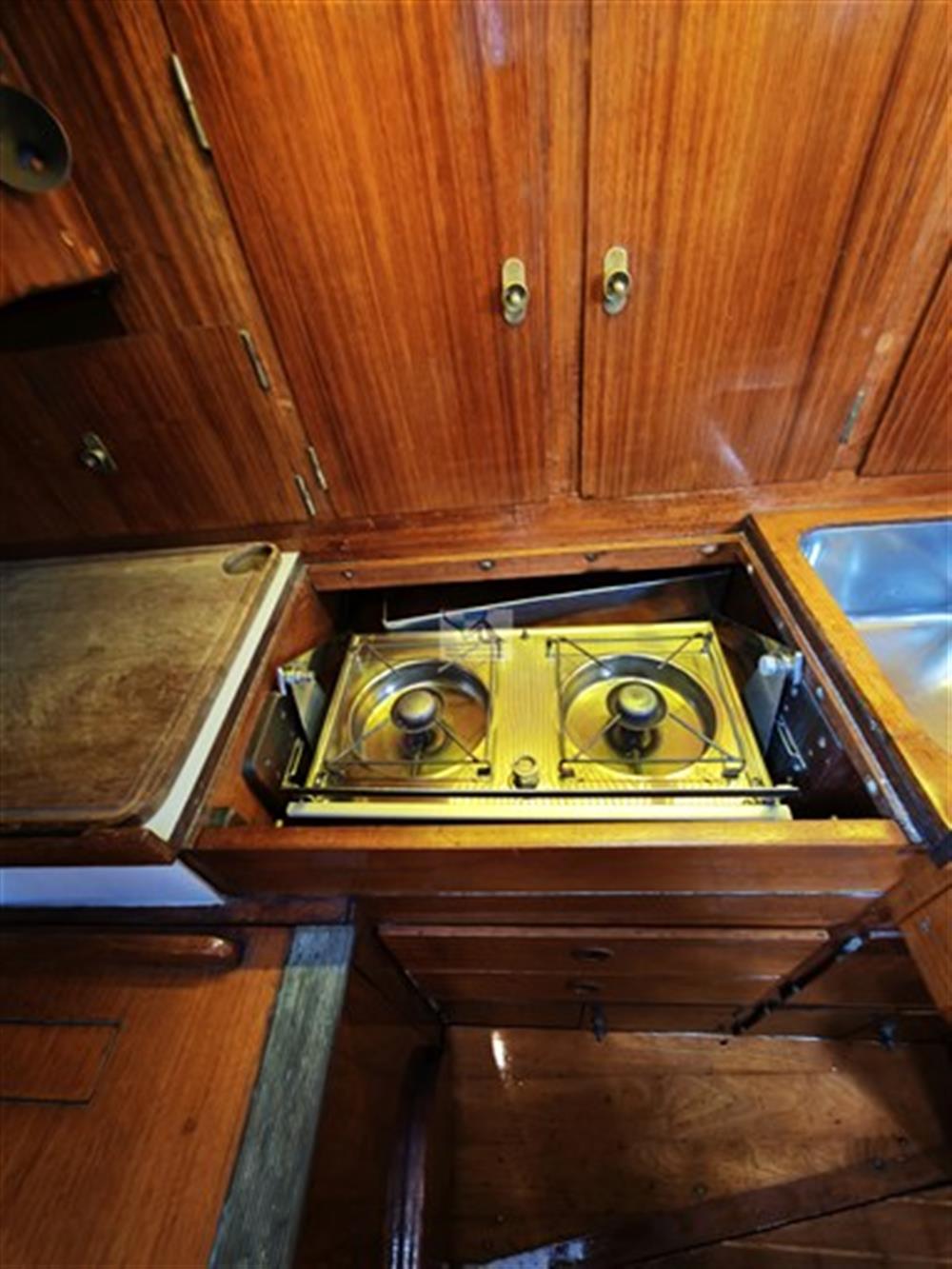 Cassaforte, Impianto acque nere, 4 Prese interne 12v, 5 Prese interne 220v, Riscaldamento (Taylor, Petroleumofen), WC marino manuale (Lavac).