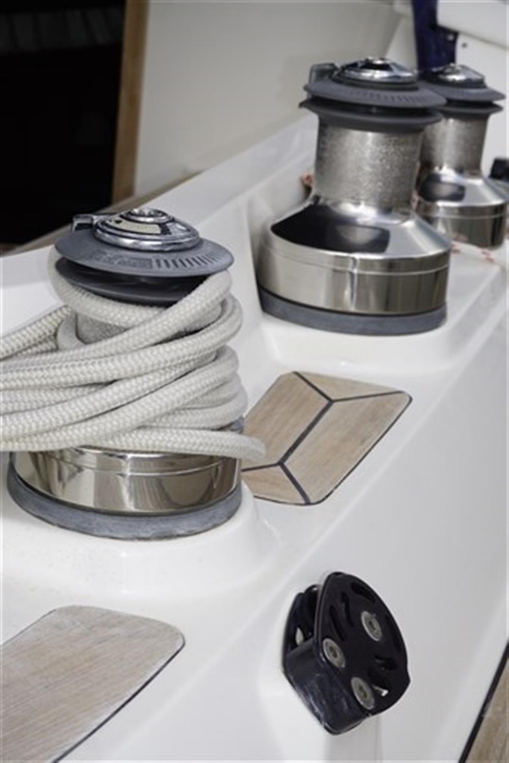 Allarme motore, Ancora (ULTRA Inox), Autoclave, Batterie (2026), Caricabatterie (MASTERVOLT Kombi 24V/4000W/60A), Doccia esterna (h/c), Elica di prua - bow thruster (SLEIPNER 24V, 10 hp, 25 cm), Gruette (SIMPSON 100), Gruette per motore fuoribordo (NOVALIFT), Luci di cortesia, Passerella (BESENZONI 2,35 m hydr), Pompa di sentina automatica, Pompa di sentina manuale, Ponte in teak (2025 new), Presa 220V banchina, Salpa Ancore Elettrico (+ Capstan, 100 m ss chain), Sartiame spiroidale (2025 new), Scaletta da bagno, Supporto motore fuoribordo (in stern locker), Tavolo pozzetto (Teak, with extension), Tender (WILLIAMS Jet 60 hp 10h), Tientibene con cancelletti, Tromba, Winch Elettrico (2 x LEWMAR 48 + 2 x LEWMAR 64), Windex.