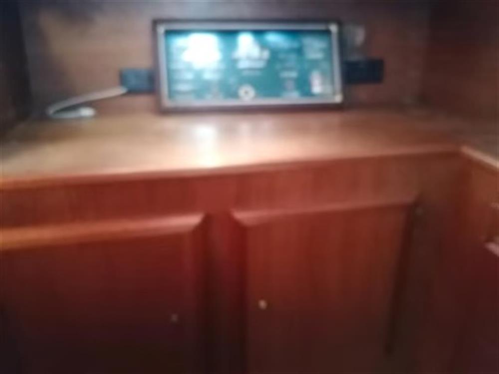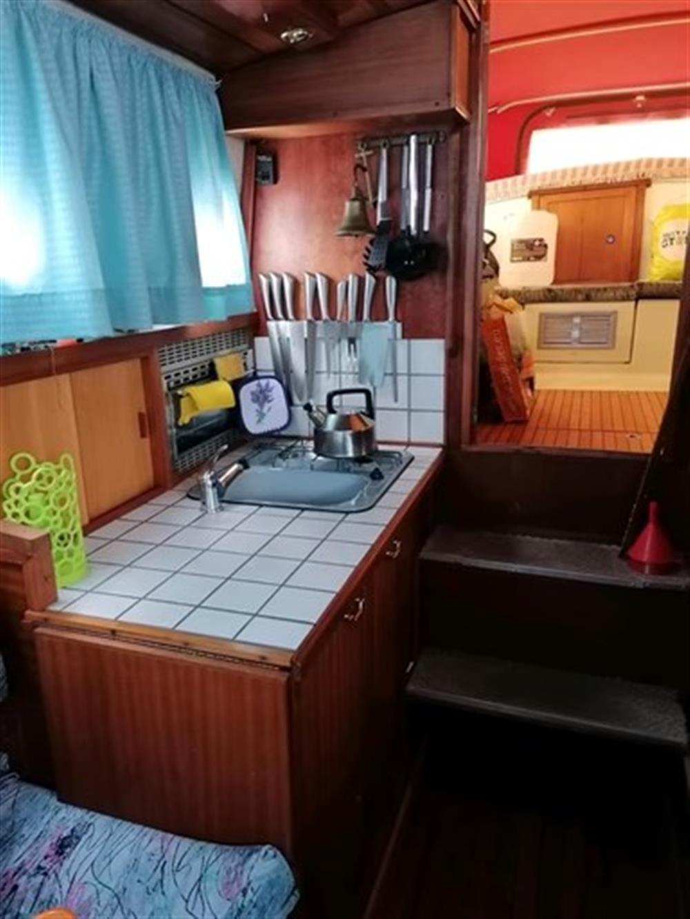 La nave ha un interno accogliente con una cabina separata a poppa.